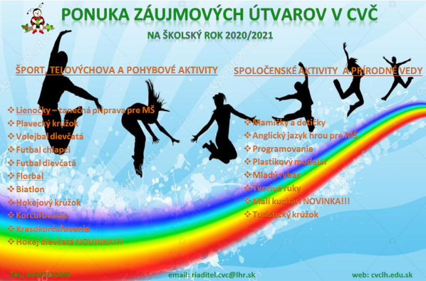 Záujmová činnosť v CVČ podľa aktuálnych pokynov a rozvrhu zverejneného na stránke začína od 1.10.2020.